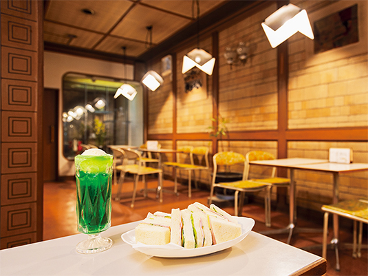 ケイ子さんによると、昔の「純喫茶」のイメージは「緑色のソーダにアイスが載ったクリームソーダ」だそうで、こんなイメージかと・・