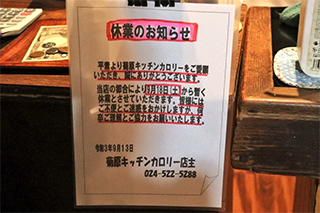 まずは、ごく最近廃業した店を二軒。その一つ目は、旅ガラス・アッキーが福島の遺跡調査部に在籍していた頃、馴染みにしていた『菊原キッチンカロリー』。