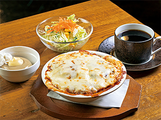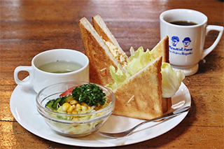 大きなマグカップで頂くコーヒーや、オムライス、ホットサンドなどのランチメニューが人気。