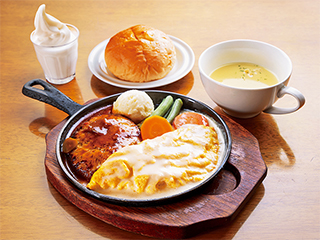 そしてこちらが、ランチの定番メニューの一つ「ハンバーグとチーズオムレツ」。