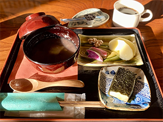 オススメメニューは「ぜんざい(焼き餅付き)コーヒー(または紅茶)セット」。