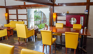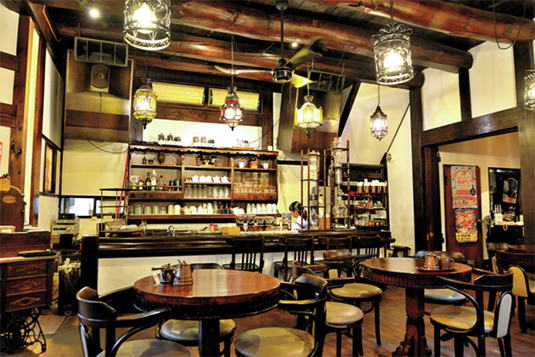 野口英世が左手の手術を受けた、旧會陽医院の建物を利用したカフェで、建物の梁は明治17年に作られた当時のものがそのまま残っている。