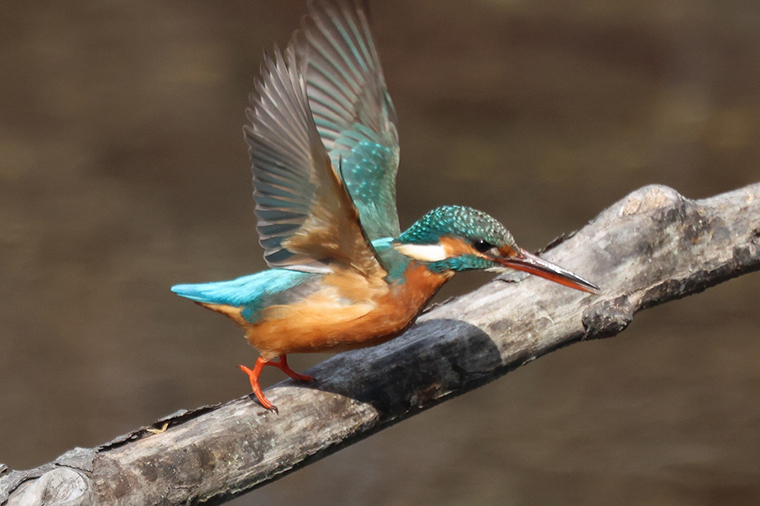 枝に留まっていたカワセミが飛び出しました。