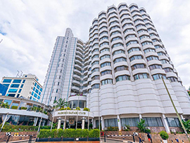 写真は、JUNの海外駐在員便り「駐在員生活の思い出編」から、ナイロビの高級ホテル「サファリクラブホテル」。1992年、PhaseⅢ契約調印式に訪れた副会長がチェックイン。 海外駐在員便り「PhaseⅢ契約調印式」