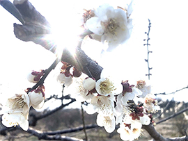 写真は、「大和伸一写真館」のエッセイ版から満開となった北国の白梅。肌に感じる風は柔らかく、芽吹いてきた山々はほんのりと色めいてきました。