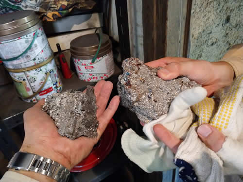 解体。左は炉底滓 。