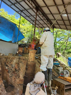 ベテランはふいごを奥に移動するので延々土かた掘り