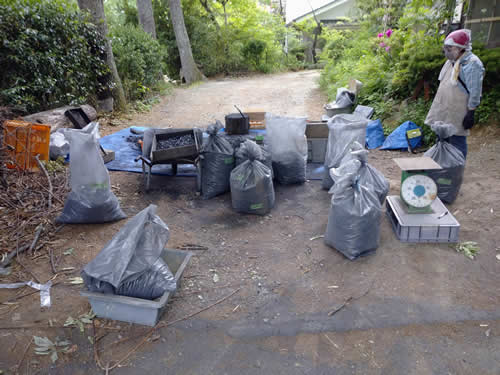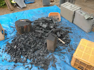 用事で休み中に本体炉底完成、砂鉄選別も進む 。