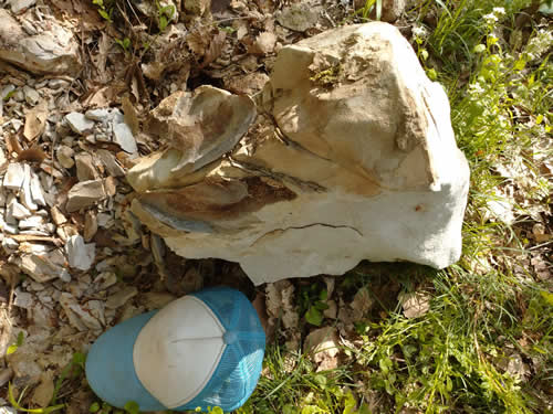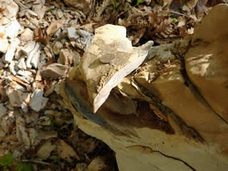 初めて少し見せて頂いて、地元頁岩の産状を見に行く。