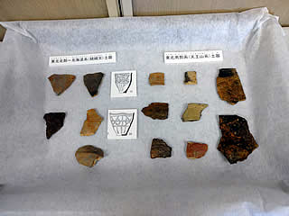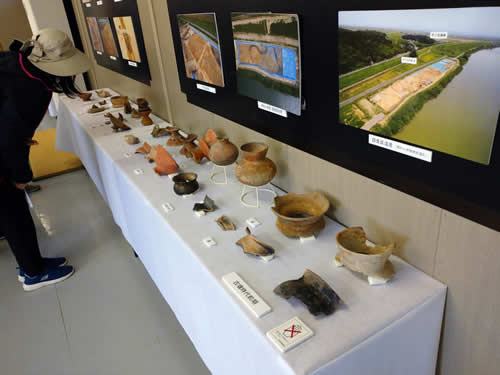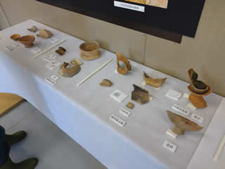 今は三面ダム下の元屋敷遺跡の当該期の土器を4段階で展示と、