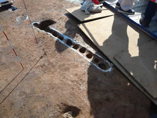 西辺の柵列。外側の溝は?(写真右側に一般的にある)