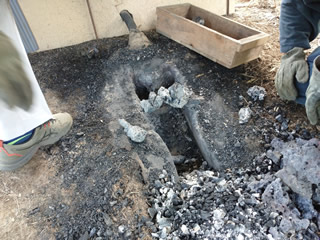 午前中は秋田県海側の堪忍沢遺跡(10C)の製鉄炉?による精錬実験。