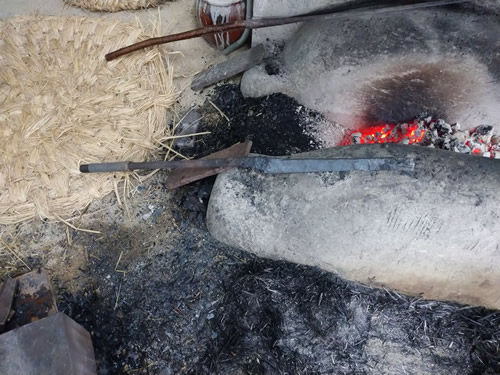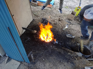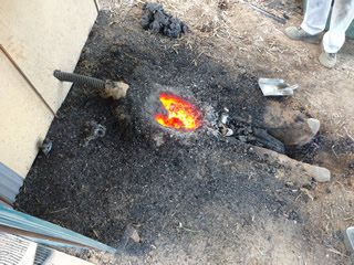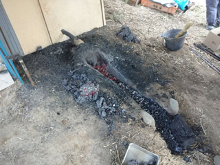 藤安刀匠による、古代蝦夷の刀とされる蕨手刀の復元実験に行った。