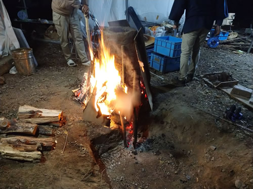 初めて会う外人の鍛治屋さんと二人で火の番。