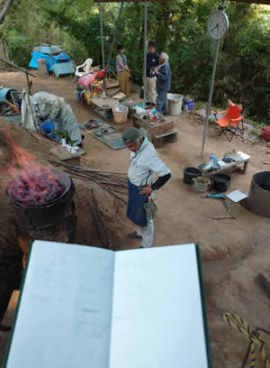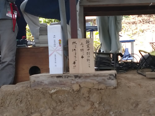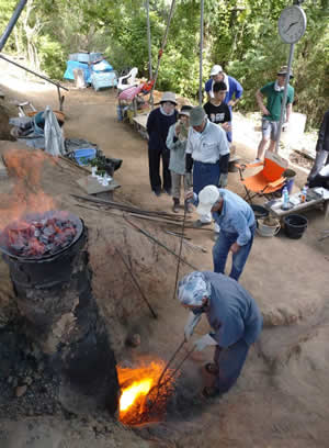 初めて木槌を持って炭や砂鉄の上を叩く係になる。