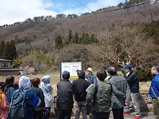 真ん中の薄黄色の帽子の方が元県博の民俗担当野口先生。