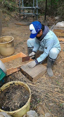 今週は掃除と昨年の炉の解体と断面観察、計画、炉の粘土作り、炉底壁貼り。