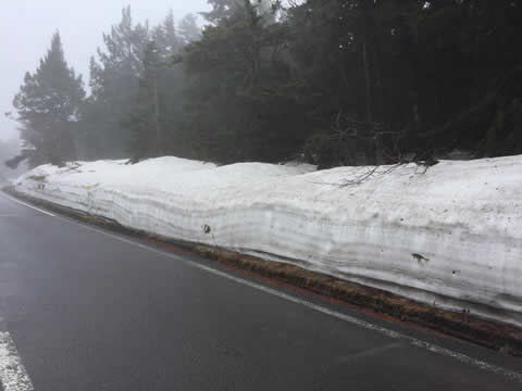 磐梯吾妻スカイラインを登るとまだ雪がたっぷり。