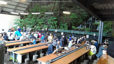葉羽 福島市佐原の山中にある吾妻庵は知る人ぞ知る流しソーメンのメッカ。本当の滝の水にソーメンを流し込み、滝壺上に設営した客席にもってきます。毎年行きます!