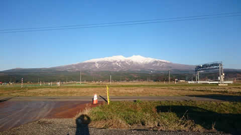現場事務所から鳥海山を望む。これを越えると秋田県。