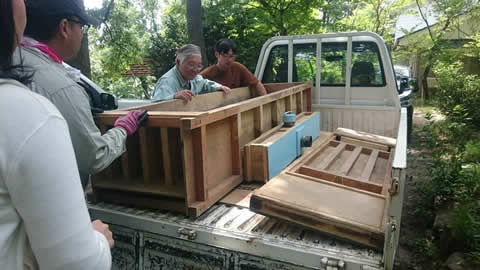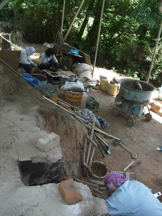 本日の立子山たたらは、いつも睦まじい能登谷ご夫妻と村下とコツコツ炉底を構築して掘方の準備をして、通風管の位置を確認して・・・と、サクサクと進み、3時には終了!