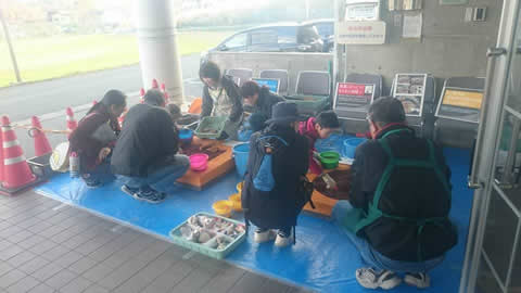 丸い縄文住居と四角い平安住居を作りました。当然出るものも違います!