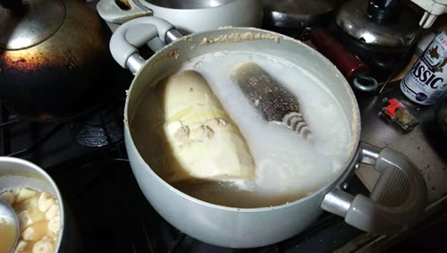 タケノコ。初めて実際に煮てるとこ見た。春を食べる。