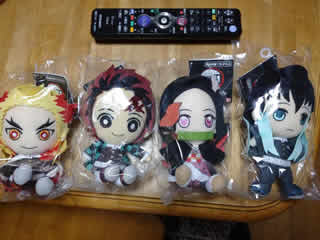 ローソンと鬼滅のやいばのコラボ人形。