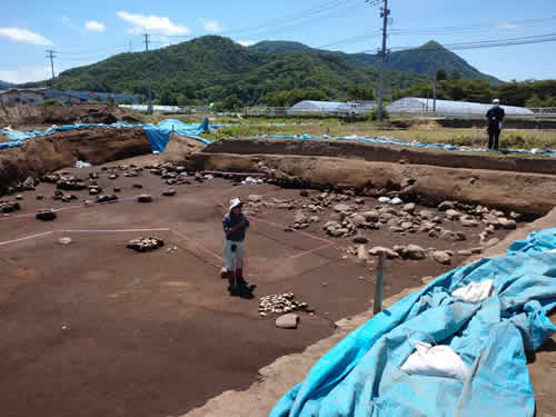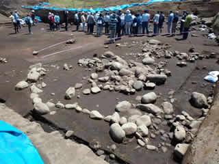 山形では希少な中期の配石遺構(大木7b)が発見、その直上に蔵王の土石流?の礫が覆う。