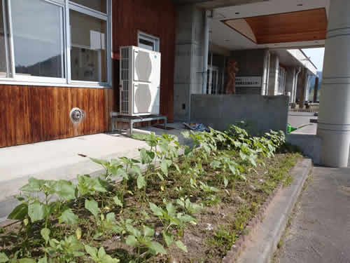 ひまわり🌻は園芸部顧問A部さん指導で初めて化成肥料まく。