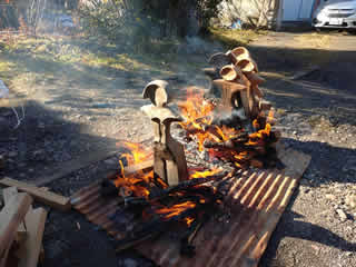 クリスマスと土器作り名人にお願いしていた土偶焼きをやつた。