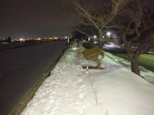 早くなつたな~。でもなぜわざわざ馬見ケ崎川の土手の雪道走る笑。