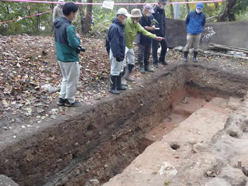 お世話になつた元上司や市町村教委OBが有志で継続的に本丸跡を調査し、昨年最終年。文献で南北朝期の築造や廃城年代(1584年)がわかる。