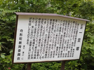 旧佐羽根峠から約一里(約4km)の国道13号沿いの舟形町紫山地区の一里塚。