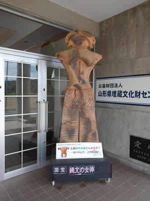玄関。実物国宝土偶の5倍の大きさ。