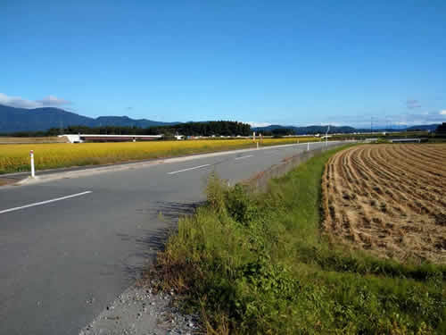 立泉川遺跡。道路左は中川原C遺跡。奥が高速道路。