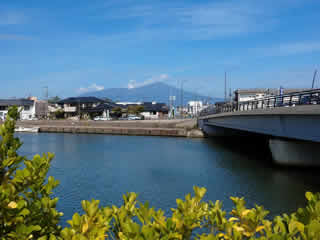 山居倉庫から見た鳥海山 。
