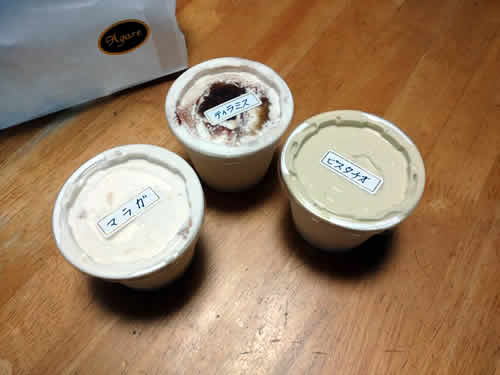 アイス屋さんアガーレでお店お勧め3種をお土産に。