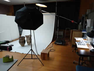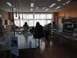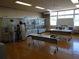 自分は洗浄、注記担当。石器を洗ってる国宝土偶の図。