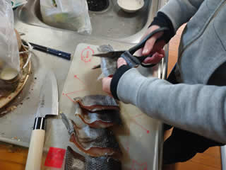 骨は味噌汁の出汁、アルミホイルが中落ち、
