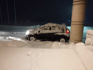 皆が先に除雪した雪も込みでドアが開かないほど積もる焦笑 。