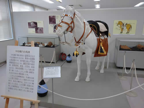 連続赤三角の装飾古墳の中田横穴の復元馬具。