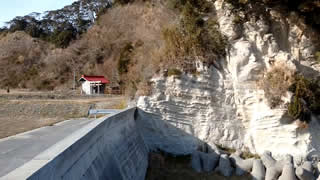 左側の山の崖に鉄ハシが出た横穴があつた。工事で既消失。