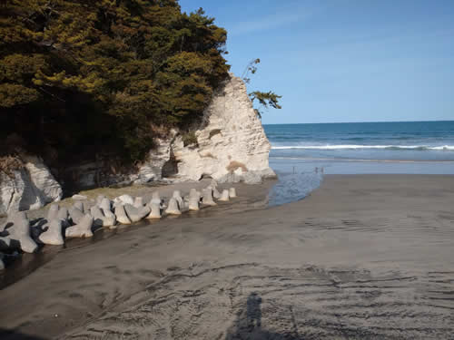 そして鉄ハシが出土した餓鬼堂横穴の目の前の砂浜は