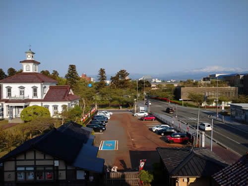 小さい頃は事務所で登れなかつた明治時代の青い建物2階より。