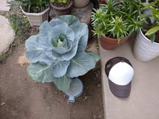 実家にも挨拶。玄関の鉢植えのキャベツ驚。