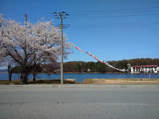 尾花沢市徳良湖の鯉のぼり。
