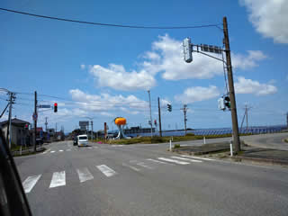 羽黒山麓の交差点に、鶴岡名産の庄内柿のオブジェ。