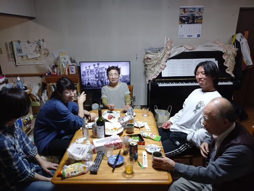 上の子、親戚長男も関西から帰還し、急遽懇親会 。