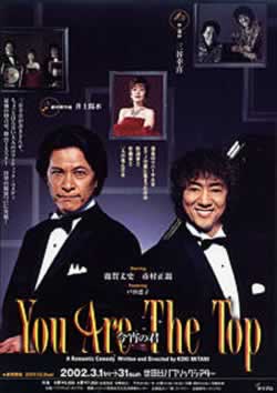 「見上げれば キリがなく・・・日ご夜毎の繰りっ返し〜 ともすればまーたーひーとりー♪ 男たちの されど満天のスター☆」 ラストの歌を、観れば観るほど口ずさみたくなる、主演、戸田恵子・市村正親・浅野和之三人が送る、笑い楽しくホロ苦く、甘美なまでの極上の三人舞台。 それが三谷幸喜作品「You Are The Top 今宵の君」なんですねえ♪ この作品は舞台を生では観れなかったのですが、DVDをレンタル?したのかな?よく覚えてないのですが、どうやってか観て、何が何でも欲しくなり、購入して飽きずにちょくちょく観ては又ホロ酔わされるすってきな作品* 物語は三谷幸喜と言えばのシチュエーションコメディスタイルで、基本の深夜の音楽スタジオから始まります。 やって来た二人の男、市村正親演じる作詞家と、浅野和之さん(さんは絶対付けたい)演じる作曲家。 二人が作ろうとするのは、亡くなった女、歌手の笹目錦の追悼コンサートで流れる新曲。 二人は他愛もないおしゃべりから、女の話を思い出して行くのです。 この場面の切り替え手法や、転換技法などは、舞台自体には詳しくないので既に技術としてあるものか分からないのですが、ものすごい組み換えの旨さが際立ちます。 組み立て、と言った方が正しいのかも。 ものすごい数のシーンと会話、クロスする会話と人物関係、前半はほぼその見せ場の妙で驚かされます。 しかしそこに会話のウィット、面白さや個性のおかしさ、ユーモアと笑っちゃう設定を組み込むのが流石に三谷幸喜。 何回も見てると、最初の市村さん演じる作曲家の「パセリいただきま〜す」がツボに入る(^@^) 面白いんですねえ〜かーなり!! 余りの会話と設定の妙に、説明じゃ絶対面白さは伝わらないので、できたら観ていただきたい一本です。 そして、徐々に明らかになって行く笹目錦のその歌手の半生と男二人の関係から、各々が背負う悲哀。 そして一人になったのは・・・ そこへ・・・ああ、もう言えない。言ったら怒られる(まだ観てない人に)。 そして三谷幸喜らしいオチが又抜群のテイストで笑いを取った後、夢か現か、三人のショーの短い幕が開くのです。 そこで歌われるのが、井上陽水作曲の原題曲 You Are The Top☆ その抜群の歌唱力で魅せる聴かせるミュージカル俳優でもある戸田恵子と市村正親に、役で聴かせてしまう浅野さんの魅力o(^o^)o 最後のステージは実にすんばらしいですよv(^0^)v 実はこの舞台、当初作曲家役は鹿賀丈史さんで、名俳優であり親友の市村正親と鹿賀丈史の二人に、女役の戸田恵子さんの組み合わせで出来上がったのです。 が、鹿賀丈史さんダウンのため(体調不良?)急きょ浅野さんに役が回って来たので、当て書き(役者さんを想定して脚本を書くことです)の三谷幸喜のシナリオと演出がガラッと変えなくてはいけない。 公演初日までわずかの中での浅野さんの猛稽古と莫大なセリフ量にシーンの組み合わせの複雑さから、かなりのパニックになりそうな大変な初日を迎えてからのこのお三人の演技と演出、舞台だったらしく、観てる方は全然そんなの感じない作りでしたが、かなりいっぱいいっぱいだったらしいです(@o@) いや、でも鹿賀丈史も良いけど、やはりこの三人で観ちゃうと、浅野さんカッコ良すぎ!! 一時期コアなファンと化すほどの色気なんです。 でも老眼鏡でカンペを読んでたと言う解説エピソードがお歳を感じましたが、そこも可愛らしいのと、舞台上であのベテランさんがカンペって・・・舞台袖の凄まじさが想像されます。 それでも仕上がりは本当に拍手喝さい!! ブラヴォーとしか言いようのない素晴らしい舞台で、ラストのカーテンコールなど、DVDで画面で観ている立場にも関わらず、惜しみない拍手をこっちまで送りたくなる、エンドレスなカーテンコールがこれまた嬉しい♪ 劇中で作曲家が作る「You Are The Top」の作り方も、井上陽水の作る過程をそのまま持ってきたそうで、リアルで自然と入って来る、それでいて要所要所でいい仕事してくれる名曲。 歌詞がむちゃんこですけど、もう観終わるとそこが又イイ!! お気に入りの歌詞は「唇はト・マ・ト♪勝気なお嬢〜さん!」と言う、普通じゃ考えられない歌詞が余計いいんです!(川平慈英風) 実際に舞台ナレーションは川平慈英がやってます(オープニングとエンディングだけ)。 三谷幸喜は、こうやって知り合ってまた更にもっとと思いたくなる役を書くので、浅野さんもこの舞台の後から、三谷幸喜舞台常連になります。 夢の遊眠社出身でスターだったとか、パントマイムが得意とか、役者さんとしてのキャリアを知らなくても夢中になっちゃう、浅野さんの役であり演技であり、それは戸田恵子も市村正親も同じくすさまじいスキルが合ってこそ成り立つのに、それを自然に見せて感じさせないああ言う役者さんや舞台は、やはり見応えありますね。 これを観ると、しばし何も考えずただただ素晴らしい!!と心で拍手しながら、その舞台の感動がドワア~っと押し寄せ